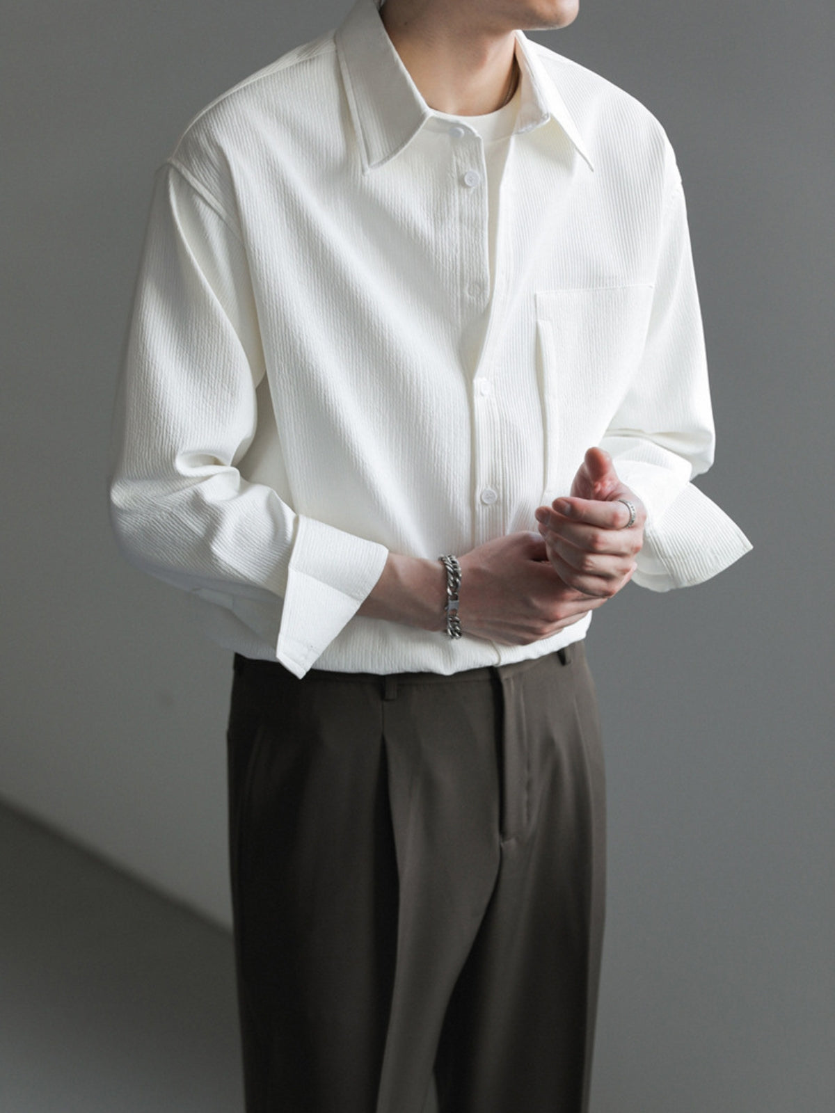 Upgrade your wardrobe with our comfortable and stylish MV Loose Drape Trendy Shirt. With a relaxed, draped fit, it adds a contemporary touch to any casual look.